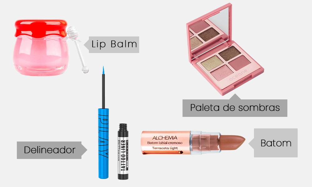 - pedrarias e strass: transformam a make, trazendo um efeito mais sofisticado e impactante;