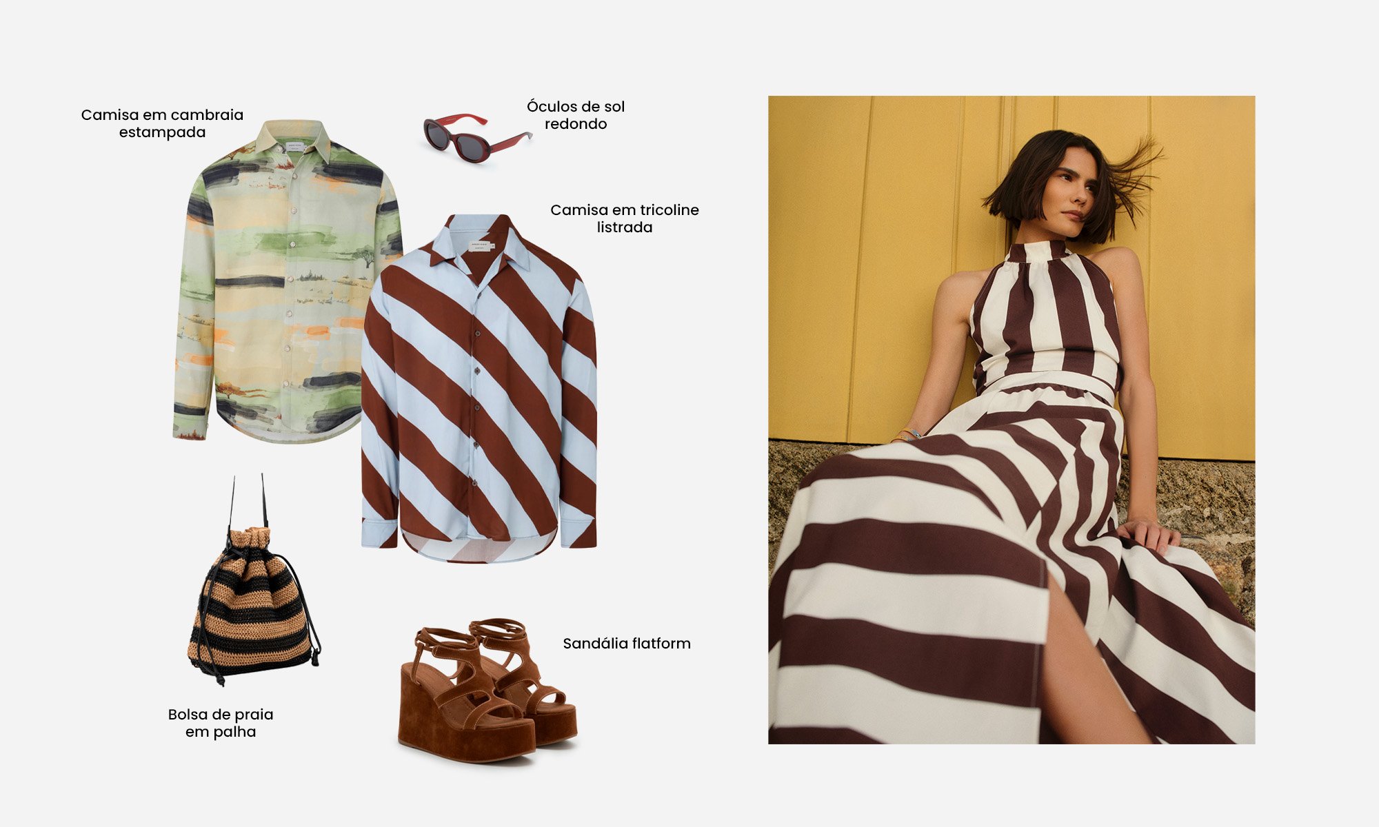 Além disso, intervenções de cor em peças-chave são um convite para ousar, como adicionar um um top amarelo à uma proposta de look em tons terrosos, por exemplo. Tem também o conceito Beach to City/City to Beach, que são: combinações que funcionam tanto na orla quanto no centro urbano, sempre com aquele toque brasileiro de criatividade.